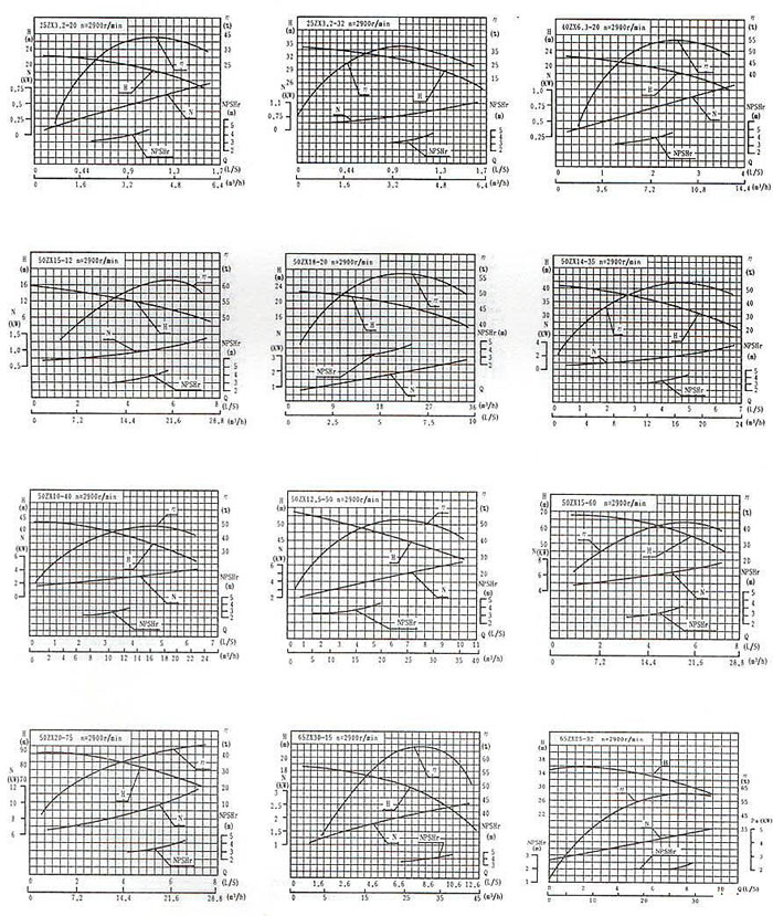 九、ZX型臥式自吸離心泵(曲線圖譜)